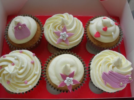 1 1/2 hr hen party : Includes demonstrations, 6 cupcakes per hen for decorating and gift boxes for each hen to take home their creations. We will bring buttercream, edible decorations, sugarpaste and coloured glitter, and show the guests how to decorate their cupcakes by piping their toppings and how to make sugarpaste roses. All the piping bags, nozzles and other equipment are provided. This package costs £100 for a maximum of 6 hens, with £10 for each additional hen (up to a maximum of 10).
